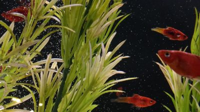 Pour débuter, je vous conseille des poissons plutôt robustes à la reproduction facile, comme les guppy et platy. Ils sont aussi très colorés et égayeront votre aquarium. (je parle ici d’un aquarium intégrant un système de chauffage). Veillez à toujours acheter plus de femelles que de mâles, sont peine de voir votre aquarium se transformer en champs de bataille !
